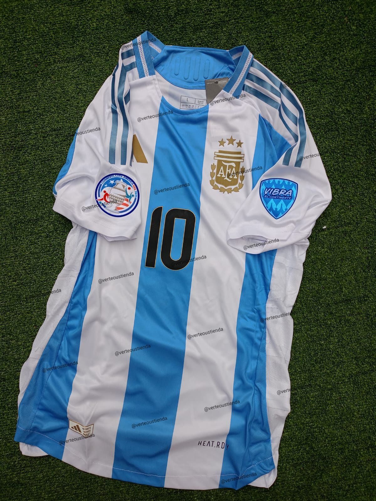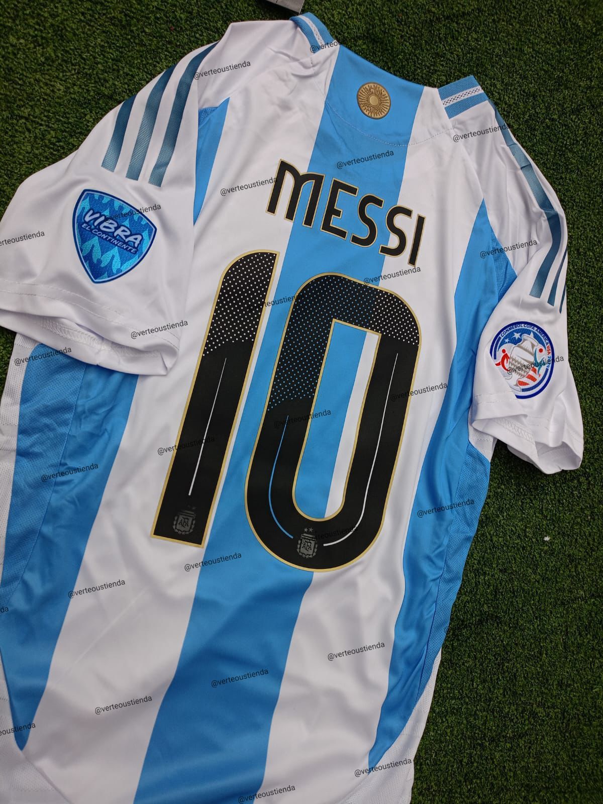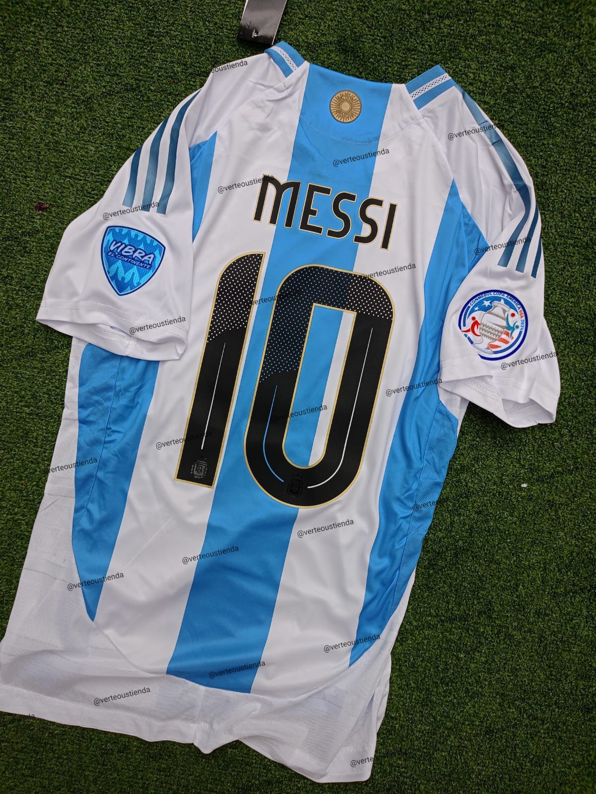 La camiseta local de Argentina utilizada en la Copa América es mucho más que una prenda deportiva: es un símbolo de pasión, gloria y tradición. Con el clásico diseño de franjas celestes y blancas, esta edición combina la esencia histórica de la Albiceleste con detalles modernos que rinden homenaje al espíritu de los campeones. Fabricada con tecnología de última generación para ofrecer máxima comodidad y frescura, cada costura y cada textura reflejando el orgullo de un país que vibra con cada partido. Vestirla es llevar en el pecho el sueño de millones y la fuerza de una historia inigualable.