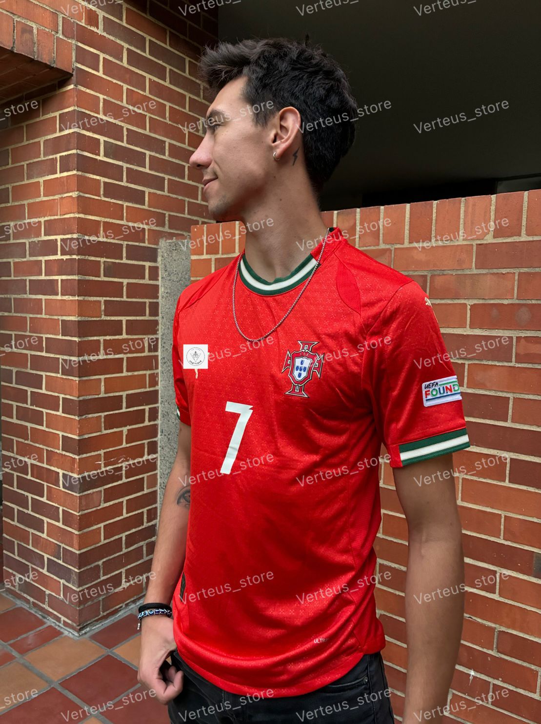Roja como el corazón portugués y con detalles verdes que hablan de identidad. Así brilló Portugal en la Eurocopa: con una camiseta elegante, poderosa y cargada de mística futbolera. ¡Vístete con la misma garra que hizo vibrar a toda Europa! 🇵🇹🔥